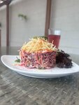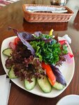 Колоритный интерьер, интересная подача блюд. Официанты хорошо работают. Всё чисто. Мужу не понравился вкус окрошки, она каком-то кисломолочном продукте (но это кто как любит). Котлета куриная по мне была пережарена, но вкусная.