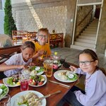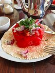 Пришли сюда на завтрак, место красивое не спорю, но кухня огорчила. Заказали лагман, плов, кукси, пасту, мелкие пельмени в бульоне. Лагман оказался просто супом с морковью и картошкой и непонятной лапшой без вкуса. Плов тоже так себе, в кукси лапша была вчерашняя и разваренная, пельмешки особо не впечатлили, паста еще ничего, дочь съела, сказала пойдет))) салат татарский нормальный, вполне съедобно,в общем я б туда не вернулась ни за что. Недалеко ресторан эфсане, вот там готовят бомбически.