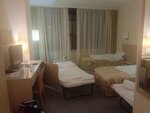 Плюс - неплохая шведка, на 4 и, если работаешь на выставке в Крокусе - у тебя есть время на все. Минусы - текстиль на 3. Нет широких простыней на большую кровать - стелят две одноместных. Подушки можно просто отдать в приют для бездомных. На таких я спал в армии, после них шея умирает. Одеяла хорошие. В номере у меня оказался и душ, и ванная, что удивило и порадовало. Странно, что шторы блэкаут сделаны не на всю ширину окна, что создаёт неудобство ночью и ранним утром. В остальном, типичный отель - стол, непонятно как собран) обычный жёсткий стул, подубитый ковролин, окно в вертикальном положении не открывается) Ну и, конечно, доступность магазинов отсутствует - это плохо...