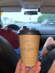 Ехала на автобусе, решила взять в дорогу кофе и перекусить. Шаурму в упаковке, которую погрели мне я не съела, прогрелась только чуть чуть, почти вся была ледяная, дно отвалилось, сок вытек в пакет, хорошо что оказался целым. Но она и невкусная совсем, одно тесто, даже лавашом не назвать, но тут притензий по большей части к производителю. Но вот с кофе другая ситуация, почти допила, как заметила что мои руки в какой то черноте, не могла понять откуда, потом увидела что рисунок смазался на стакане. Это вообще конечно. Вы находитесь около остановочного пункта дальнего следования, и вот такая подстава. В автобусе и так минимум удобств, а ты ещё оказываешься грязным, и едешь с какой то жижей в пакетике. Хотелось бы чтоб руководство сменило краску для штампа, испортило впечатление на пол поездки. Но кофе к слову очень даже неплох, и в самом помещении достаточно приятно