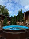 Очень красивое и приятное место. Домик на 8 человек очень комфортный для дружеских встреч. Вечером можно сходить в спа бассейн или сауну, или на массаж (массаж тут прекрасный! есть и балтйский, и расслабляющий). В стоимость входят чудесные завтраки и ужины, вечером можно воспользоваться мангалом, но нам он показался неудобным. Рядом домики с животными, детская площадка. Приехала бы сюда еще с детьми.