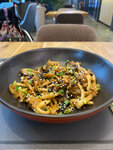 Хрустящая куриная грудка, ароматные азиатские грибы и маринованное куриное яйцо гармонично сочетаются с домашней пшеничной лапшой. Насыщенный бульон и трюфельный соус придают блюду неповторимую глубину вкуса, а свежий зелёный лук — лёгкую пикантность