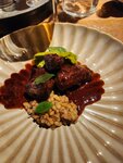 Отличное меню но сомнительный дизайн зала. Выглядит тёмным и зашорканым. Меню приятно удивило - у каждого блюда своя оригинальная подача и презентация. Особенно хочется отметить пирог с говяжим ребром. Оригинальный соус на основе сыра отлично гармонирует с копченым ребром. Так же можно отметить оьширную винную карту и хороший подбор напитков. Но сильно подкачал сервис - на посещение выдялется полтора часа, при том что зал был на половину заполнен. Так же нас посадили за грязный стол рядом с людьми у которых был праздник, ещё раз напомню что зал был полупустой. И ещё один огромный минус, то что грязный стол никак не продизинфицировали, просто протерли сухой тряпкой и не поменяли заранее сервированные приборы! Это негигиенично на просьбу заменит приборы официант кажется просто съимитировал их замену так как холдер для приборов был грязный ровно в том же месте. Так же можно отметить большую спешку официантов - поэтому презентация блюд выглядит на отвали