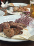 Просто великолепный шашлык. Баранина, говядина, курица - всё, что пробовали, различные вариации, всё очень вкусно. Недаром сюда постоянно стоят очереди и далеко не сразу можно сесть. На самом деле в меню есть далеко не только шашлыки - салаты, супы, хачапури, напитки всех видов. Даже выбрать сложно. Есть отдельные очень атмосферные залы. Вообще в целом, если сидеть на улице, у места есть такая атмосфера лета, отдыха, шума людей.