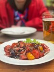 Не хотели идти сначала, начитавшись негативных отзывов. Но все-таки посетили кафе. Получилось, что была это Пасха и народу было под завязку. На места на улице даже очередь была. Нам в зале нашли местечко. Причем, по нашей просьбе, организовали удобный столик у окна, когда мы отказались садиться у входа. Учитывая количество народу, пришлось подождать подачу блюд, но официанты были вежливы, очень старались и качество блюд нас устроило вполне. Брали стандартный цезарь с креветками. Креветки были хорошо приготовлены. А также, понравился шашлык из семги. Прям с запахом костра:)) У них вообще, как мы заметили пользуются популярностью блюда, приготовленные на костре. В общем, остались довольны. Вернемся еще за столик на улице у фонтана;)
