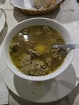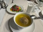 Хорошее обслуживание, красивые приборы, достаточно большое расстояние между столами. О всей кухне не сужу, но всё, что заказали, очень понравилось: от водки и тарелки с зеленью или с сыром до долмы и шашлыка. Пицца тут кажется всегда очень хорошая. Цены не самые дешёвые, но приятная обстановка и вкусная еда того стоили. Бронь по телефону принимается только на завтрашний день, так что есть смысл приходить сюда пораньше, то есть до наплыва посетителей. Какое-то время громкий певец на сцене мешал спокойному разговору, но потом мы к нему привыкли.