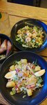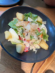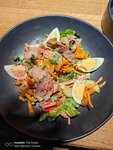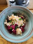 Были на бизнес-ланче. Еду принесли быстро, порции хорошие. На горячее брали горбушу, в которой иногда попадались косточки, картошка и салат из крабовых палочек были вкусными, супа налили немного 🤏🏼 , сметанный соус с чесноком тоже ничего. В целом сойдет.