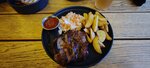 В общем и целом не плохое заведение, смузи вкусные, пиво обычное, вино тоже. Стейк из свинины вкусный, сочный. Салат мясной понравился, достаточно заправки, мяса. Десерт «Восточные пряности»-это морковный торт, но крем-чиз не достаточно сырный, будто его смешали с белковым кремом. Почему же 4 звезды.. мы ждали бокал пива 40 минут при почти пустом зале, а стейк час. Причем сидели компанией и почти весь стол покушал уже к тому моменту, как нам с подругой и ее дочкой вынесли мясо. Мы сидели и смотрели, как кушали остальные.