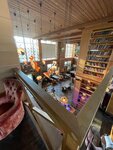 Много раз были раньше в Библиотеке, поэтому решили немного отметить день рождения в семейном кругу тут. Этот раз был скорее всего последним, много что не понравилось. 1) В будний день в 19 часов сесть якобы было почти негде, хотя кафе было полупустое и столик бронировался заранее, но предложили всего несколько не комфортных мест. 2) Кондиционер не работал или не справлялся от слова совсем, в кафе была духота и жара, на веранде в 30+ градусов тоже было не особо комфортно, да и с ребенком рядом с курящими сигареты и кальян людьми в жару сидеть не хотелось. 3) Отношение персонала поразило, официанты по несколько раз игнорировали просьбы, не обращали внимание, они откровенно не справлялись, тк выяснилось, что в это время одновременно был банкет и свадьба, и на всех их было мало, например два шарика мороженого несли чуть ли не 30 минут. Меню просил три раза, его сразу же забирали другие официанты, почувствовали себя как каком то глупом реалити шоу, отбило все желание дальше продолжать праздновать ДР в этом месте. 4) Некоторых позиций из меню не было, например из детского. Алко коктели через 10 минут после выноса официантом превратились в воду (растаял лед, да и сами коктели по вкусу были на троечку). 5) Пришел исполнитель живой музыки, спел 5 песен, сдклал себе коктейль и удалился, больше его не было, ну и слава Богу, спасибо и на этом. 6) По ожиданию еды еще при первом заказе сразу же сказали, что придется ждать долго, в итоге после часа проведенного в жаре и отведав салаты, было принято решение взять остальной заказ с собой и удалиться. Еда была нормальной, но порции маленькие, например салат с баклажанами крохотный, понравилось лишь хачапури - тк принесли ее раньше салатов и была она реальна вкусна. Из плюсов - сделали скидку в честь дня рождения на еду (без бара), хотя и спросили мы про нее сами, тк нигде это не написано и не анонсировалось, при бронировании тоже. Красивое помещение, но не менялось уже годами. Есть веранда. При выходе девушка хостес поинтересовалась, почему так быстро уходим, на что словами ей пояснили в кратце написанное выше. Наверно, в тот момент она была единственным человеком, кому было не все равно, ну или так показалось. Итог такой: раньше было лучше. Возможно, конечно, это стечение обстоятельств, но желание посещать данное заведение пропало.