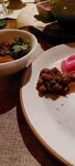Внешнее оформление понравилось, внутри дизайн тоже. НО на ресепшене стулья потертые. Диваны за столиками жесткие. Еда была 50/50 хинкали принесли полу холодные, забрали подогреть, очевидно в микроволновке, внутри сока почти не было. Лосось был нормальный. Долма тоже не самая вкусная. Кофе хороший, но цена на сироп + 80р это было удивление. Официант не знал вообще ничего про блюда и на вопросы не смог ответить. Помимо этого они не знают калорийность своих блюд, что очень странно, ведь Везде есть технологические карты, где они прописывают это все. Мне лишь нужно было знать калорийность блюда. И не все было в наличии. По впечатлениям второй раз вряд ли приедем. Ни обслуживание, ни вкус не зашли