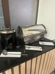 Что касается плюсов обстановки: зал работает менее года, мебель удобная, потолки высоченные, музыка ненавязчивая. Теперь по минусам. 1) Подключение к Wi-Fi - действительно квест, только с помощью администратора. 2) Еда: курица и сосиски, сухая гречка и макароны-спиральки. Чай чёрный и зелёный и кипяток, из кофе только эспрессо и американо, молока/ сливок ни порционных, ни в разлив нет. Вода из бутыли. Нарезка батона. Бутылочки с горчицей/ кетчупом/ майонезом. Из "бесплатной" еды - это всё!!! Ни фруктов (сентябрь месяц!), ни овощей или салатов, ни даже печенек.... Но! - рядом буфет, где блинчики, сырники или кусочек торта 300-400 р. С настолько скудным ассортиментом столкнулись впервые...Надо дорабатывать обязательно!!!!