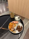 Бизнес зал мягко говоря, не очень. Никакого разнообразия в питании, гречка, макароны, сосиски, курица, салат и всё!!) Даже молока для кофе нет.. Это очень слабенько.