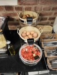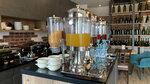 Мы заказывали проживание с завтраками, которые проходили в этом ресторане. Мы пришли уже почти под конец, но все блюда были в наличии и их постоянно пополняли. Любой вид яиц можно было заказать у повара. Хотя и на шведской линии их было несколько видов. Варёные яйца твои как всмятку, так и вкрутую, что очень редко встречается! Горячие блюда были в изобилии и были действительно горячими. Под соусы и джемы были отдельные креманки. А десерты были в порционных стаканчиках. И несмотря на начало мая, на завтрак было три вида фруктов. Кофе вкусный, а водичка была в бутылочках. И мы взяли их с собой на прогулку.