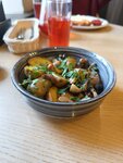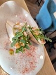 Когда зашли нас никто не встретил, минут 5 не было официанта, когда все-таки пришёл, оказалось что он практически не знает собственное меню 🤷‍♀️ Все блюда были невкусными и пресными, в том яме было всего 3 креветки и несколько помидоров, морс подавали в обычных столовских кувшине и стаканах, однако цены на блюда были соответствующие расположению под Кремлём. Видимо все-таки неспроста кафе было полностью пустое вечером в субботу. К сожалению, порекомендовать не может.