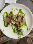 Были в ресторане вечером: приятная атмосфера, свет приглушенный, на столе горела свеча. Очень уютно, хорошо посидеть и пообщаться. Еда понравилась. Печень по-строгановски получилась мягкая и вкусная. Запеченный картофель с икрой сытный, сливочный. Крепвиль с лососем легкое блюдо, очень сбалансированное. Обслуживание доброжелательное, все принесли быстро. Хорошее место, чтобы спокойно поужинать.