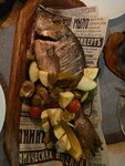 Хорошее местоположение, приятный интерьер, но бегать через улицу в соседнее помещение (заведение занимает два помещения) помыть руки такое себе удовольствие. И еду я так поняла тоже носят через улицу, может поэтому часть блюд была не такая горячая, как хотелось бы. У нас было хорошее обслуживание, и довольно всё быстро. Тыквенный суп с креветкой был ужасный. Мало того, что тыквенное пюре(жидкое разбавленное водой) и сливки были налиты как будто раздельно (но может конечно это такая подача), так ещё в была одна единственная креветка(хотя бы большая) в кляре!!! И конечно в супе это всё размокло. Салат из свеклы и сыра был хороший, но порция конечно малюсенькая. Курица на гриле была хорошая. Борщ не плох, мясо было отлично проварено, но хотелось бы куски поменьше. Детям принесли раскраски и карандаши. И подарили нам маленькую деревянную лошадку-качалку.