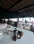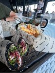 Большой, просторный ресторан, посадка активная в отличии от соседних ресторанов, видно, что место пользуется спросом. Интерьер уютный, диванчики, просторные столы. Есть навесы и кондиционеры, сидишь на набережной, но не палит солнце, можно комфортно покушать. Сервис не напряжный, суетятся, но без энтузиазма. Подача блюд была не быстрая. Нам по вкусу блюда не зашли! Своеобразный вкус, пресно, подача не красивая! Тунец мороженный, пересушенный. Карпачо с «душком». Мясо вкусное подали👍 Коктейль тоже вкусный. В ресторане поют отечественные звезды, видно, что место видовое и популярное! По цене не бюджетно 😉 Конкурентов на уровне не так много, поэтому место привлекает к себе, но до 5 звезд для нас не дотянул.