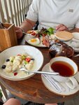 Из плюсов: 1.Быстрое обслуживание 2.Вкусные завтраки,которые можно заказать почти в течении всего дня,отдельное спасибо за каши на альтернативном🙏🏻 3.Большой выбор десертов,отдельно отмечу синнабоны,яблочный пай:) 4.Большой выбор напитков,вкусные смузи и кофе. 5.Веранда с видом на море,где можешь спокойно присесть,позавтракать и подумать просто о чем то неважном)
