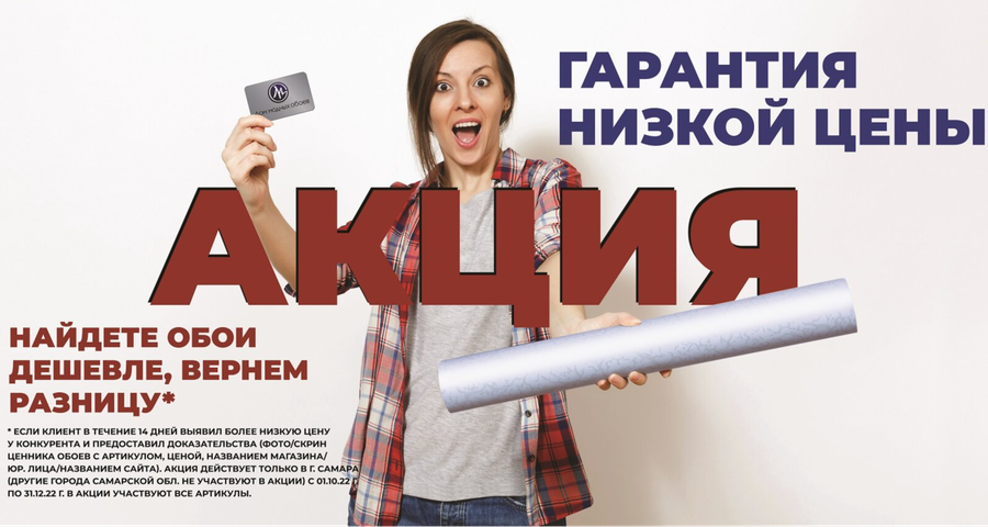 Акция "Гарантия низкой цены". Найдете обои дешевле, вернем разницу