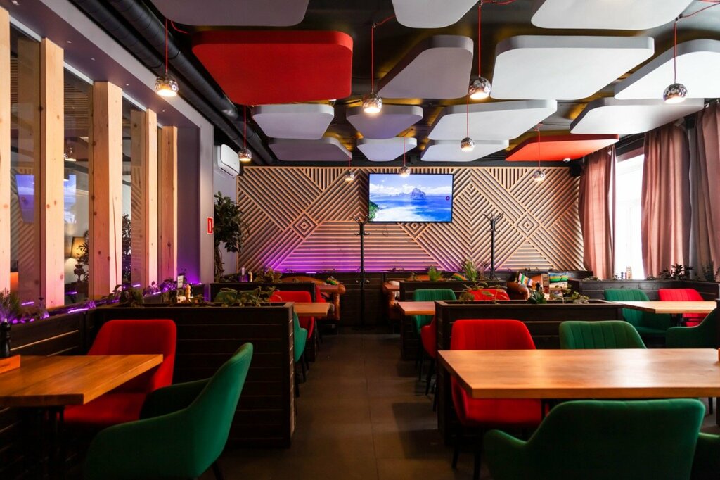 Очень странное заведение, скорее всего это кафе при гостинице и этим объясняются все огрехи сервиса, и вкуса)) Со входа нам сообщили, что льда нет, еду ждать от 30 минут, такой френдли сервис нас не остановил, чем мы расстроили официанта. Персонал там сидит за ширмой и в зал еду только выносит. При этом грязную посуду не заберают. Половина еды и напитков в стоп листе, по части пояснений получить не удалось. Из того что заказали, цезарь вполне не плох, но вот креветки в нем изрядно замучены кипятком, хотя в меню написано, что креветки должны быть обжарены. Паста карбонара вполне достойно приготовлена, остальное всё не сказать, что невкусное, но и вкусным назвать сложно. Креветки попкорн с таким вырвиглаз соусом васаби, что кроме этого соуса другого вкуса почувствовать невозможно. Плотву поштучно подают в порции 2 штуки. Ребра суховаты и в слабом маринаде, свинина в грибном соусе с овощами жёсткая из овощей три слайса кабачка. Апероль без льда, но нас предупреждали. Пиво разливное Бланш, оно хотя бы холодное. Сервис странный, грязную посуду не забирают, счёт на людей не разбивают, блючиз соус отдали в горячей плошке, не знаю почему. Впечатление у всего этого грустное, больше не зайду и в целом не рекомендую.
