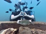 Погружение было супер! Привезли в дайв-центр «Сирена». Всё доступно и понятно объяснили. Для первого раза решили взять полнолицые маски - не пожалели. Погружались с классным инструктором Малышом, хотя, для него - малыши, скорее, мы. Большую часть маршрута таскал на себе одного из нас, снимал, фотографировал, поймал на лету слетевшую ласту, и интересовался всё ли окей, а в конце ещё и сказал, что мы молодцы. Потом девушка Катя быстро скинула все фото и видео - шедевры нашего инструктора, а также подсказала как лучше отредактировать снимки в телефоне. Всё просто очешуительно! Нам понравилось)