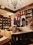 Хотелось бы оставить отзыв о данном заведении, будучи свежей на эмоции и впечатления! Посетили сегодня этот ресторан, решив интересно и вкусно закончить вечер. Выбор пал на «Доктора Виски», поскольку о данном месте слышали много положительных отзывов, видели видеоролики в интернете, которые также содержали в себе все исключительно позитивное: люди ТАК отзывались, что был грех не попробовать самостоятельно, находясь так недалеко. Атмосфера в ресторане безумно располагающая и соответствующая названию. На входе встретила очень милая девушка, которая любезно проводила нас к свободному столику. По поводу обслуживания - этим вечером за нами был закреплен Андрей. Очень хочу обратить внимание на данного человека! Быстро проконсультировал нас по поводу меню, кратко, но в то же время подробно рассказав об интересовавших блюдах, помог советом, заинтересовал. Подача - отдельная история. Правда захватывающе! Десерт, например, готовился прямо при нас, смотреть было очень интересно, поскольку данный процесс также сопровождался комментариями со стороны Андрея, даже историей этого блюда. Такое гастрономическое путешествие принесло мне и моей семье огромное удовольствие, а неравнодушие и полное участие Андрея в нём добавило не просто изюминку, а целую вишенку в этот вечер. Здорово, когда работой занимаются профессионалы своего дела! Сомелье также хочется отметить и поблагодарить: в самом начале рассказал об алкоголе, был готов помочь и подобрать все по вкусу. Выбор блюд - очень разнообразен и необычен, так что здесь понравится не только обычным посетителям, но и истинным гурманам. В самом начале, чтобы «разбудить рецепторы», был предложен, вроде как, гаспачо в стаканчиках, а по завершению ужина - очень приятный сюрприз в виде сорбета. Всем однозначно рекомендую посетить «Доктора Виски» и прекрасно провести вечер, просто так, без повода! И отдельное спасибо Вам, Андрей, что так украсили наш ужин!