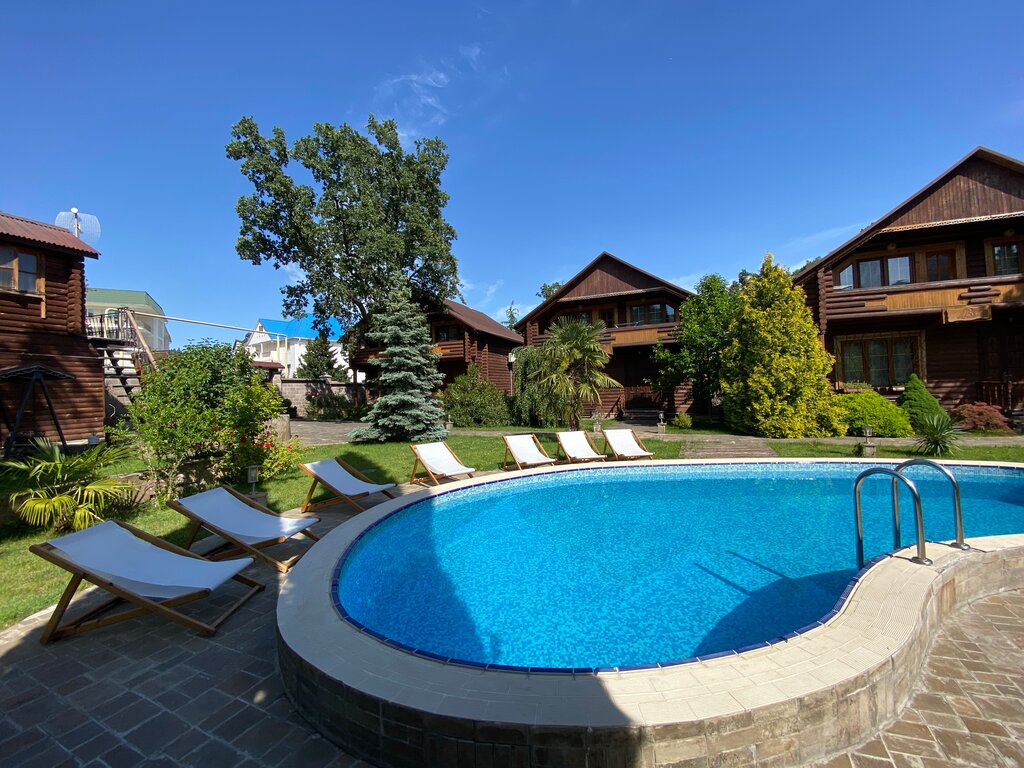 Очень живописное место, много зелени. Уютные деревянные дома, в которых дышится легко, сон спокойный. Кухня, оборудована всем необходимым. Телевидение со множеством каналов,интернет. Бассейн небольшой, но есть место, где можно плавать. Есть сауна,мангальная зона с видом на море,качели с пледами и подушками. Отзывчивый управляющий Владимир Павлович! Любая просьба была выполнена, оказана посильная помощь. Очень тактичный! Рекомендую это место.