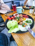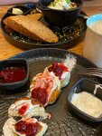 Были два раза в этом заведении. Первый раз обедали пробовали пасту с телячими шестками и грибами.Она вроде вкусная,но кака-то обычная.Мясо мягкое на волокна расходится,но нет изюминки блюда или акцента.Может быть соус был пресным..кофе проходимый Второй раз завтракали сырники вкусные,сметана нормальная,а вот соус из лесных ягод оказался жидковат,но все вместе было вкусным. Наивысшая похвала это пшенной каше с беконом и сыром!Она действительно великолепна! Само заведение миленькое,веранда красивая и большая + на завтрак приносили бесплатный стакан воды.