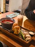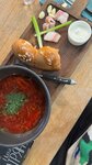 Второй раз я бы врятли тут появился, если только по какому то поводу.. Сау братец, щяс раскину тебе за это место по чесноку и кайфу Начнем с кухни, посредственно если быть откровенным, подача борща очень зашла и вкус его довольно понравился, хорошенький Салат из кальмаров, на довольного любителя, я как человек любящий пробовать новое второй раз его бы не взял, имбирного вкуса там не много, соус довольно тяжелый для восприятия Телячьи щёчки, я то думал они будут растомлены до такого состояния, что они будут нежно рваться руками, а получилось так, что их я еле еле разрезал вилкой, нож в падлу было использовать... По поводу шарткоптера интересно, но тоже довольно посредственно, тяжело пьётся, трубочки не по размеру тапиоки, когда пытаешься засосать напиток, то топиока забивает трубочку и приходится выбирать момент (( Ещё меня удивил подход к туалету, где не было стекла между клиентской зоной и там где я высмаркивался, когда все было слышно 😃 Давай брат, ещё встретимся газ палас