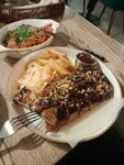 Если бы можно было поставить десять звёзд, я бы поставил 11! Заказывали несколько раз на самовывоз, а после ужинали в зале. Кухня просто потрясающая! Порции большие, всё очень вкусное, подача на уровне крутого ресторана. Блюда сделаны с любовью к продукту и со вниманием к сочетаниям Во-первых, и, наверное, в главных — свиная рулька это просто отвал всего! Вкусная, жирная, нежная, разваливающаяся нога в глазури с картошкой и капустой! ОЧЕНЬ вкусная штука Утиная ножка прекрасна. Пряная вишня и цедра создают пикантную сладость к вкусному и нежному мясу Щучти котлеты — отличное блюдо, добавление икры полностью закрывает потребность в соли и блюдо оказывается самостоятельным и очень цельным по рыбной тематике Отдельно хочется отметить салат со свёклой — роскошное сочетание, огромная порция, заказывали несколько раз с большим наслаждением. Сливочный сыр с подкопчёной свёклой — очень понравилось сочетание Также восхитила плескавица в необычном прочтении, рекомендую попробовать, она особенная в ДД. Традиционный пряный вкус, но с уникальной подачей Ресторан просто открытие! Отличнейший. Спасибо персоналу! До новых встреч