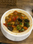 Здесь вкусно всë! Не смогли не вернуться в это маленькое кафе, потому что хотелось попробовать чебуреки. В первый раз наслаждались салатом с хрустящими баклажанами и малюсенькими пельменями в бульоне. Порция салата размером на двоих! На десерт - Наполеон и чай с облепихой... Словно побывали в восточной сказке! Кафе уютное с элементами этники. Персонал внимателтный, знатоки гостеприимства.