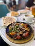 Заведение произвело на нас чень приятное впечатление. Атмосфера здесь уютная и дружелюбная, с элементами восточного декора, которые создают особую атмосферу. Персонал был вежливым и внимательным, быстро принесли меню и помогли с выбором. Мы заказали чебуреки и мясную говяжью сковородку. Чебуреки оказались настоящим открытием! Тесто было тонким и хрустящим, а начинка – сочной и ароматной. Внутри была нежная мясная начинка с пряными травами, что придавало блюду особую изюминку. Подача тоже порадовала: чебуреки были горячими и аккуратно оформленными. Что касается мясной говяжьей сковородки, то она тоже не разочаровала. Мясо было отлично приготовлено – мягким и сочным, с насыщенным вкусом. В сковородке также были овощи, которые добавляли свежести и ярких красок. Все это было щедро приправлено специями, что подчеркивало восточный колорит блюда. Порция оказалась достаточно большой, так что мы с удовольствием поделились ею. В целом, мы остались очень довольными посещением "Селям-алейкум". Это место, куда хочется вернуться, чтобы попробовать другие блюда из меню и насладиться атмосферой восточного гостеприимства. Рекомендуем всем любителям вкусной еды!