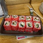 Уютное место, чисто, людей не сильно много. Взяли попробовать роллы - цена за 20 штук оказалась очень даже приемлемой, думала будет дороже (ценника не было))) Вкусные очень, для меня это первые роллы не в своем городе, да еще и не из доставки, а магазинные, мне понравилось, есть порция и поменьше, вроде 8 штук. Также есть палочки и пакетики васаби не дорогие. Советую)