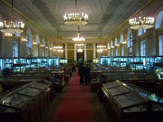 Итак, старый отзыв канул в Лету... Ну что ж начнём все сызнова. Давно намеревалась побывать в этом музее. Ещё в то время, когда он был музеем академии наук. Но! Во всякий мой приезд в столицу музей был закрыт. И о чудо! Мы возле музея. Попутно великолепный парк вокруг и по соседству историческое здание Аквдемии. Здание самого музея - небольшое. Ко входу ведёт парадная двусторонняя лестница. При входе гардероб, билетная касса ,охранник и небольшая лавка по продаже интересных образцов минералов. Непосредственно музей располагаетсч в одном большом зале. Но как он плотно заставлен витринами и стеллажами! Сама коллекция - потрясающая и за один раз всё охватить невозможно. Два часа с лишним мы бродили меж витрин, восхищаясь выставленным. При первой же возможности вернёмся сюда!