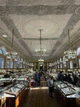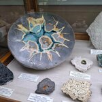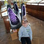 Большой зал в старинном здании с весьма представительной экспозицией. У входа образцы метеоритов, далее витрины и стенды с целой радугой минералов: розовый родонит, желто-зеленая сера, изумительный зелёный малахит, голубой и синий азурит, фиолетовые аметисты. Кристаллы - огромные и миниатюрные, каменные цветы, пластины, иголочки, шары, ветки и веточки... Изделия из поделочных камней. Есть синтетические драгоценные камни. Окаменелости. Фульгурит - образование от удара молнии в песок, выглядит как разветвленный стебель. Интересно. Познавательно. Единственное - ребёнку роста не хватило для осмотра верхних полок витрин. Надо будет подрасти и вернуться попозже. И взять экскурсию