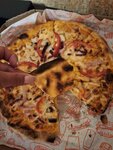 Для тех, кто хочет взять пиццу - не рекомендую. 1.09.2025 мы взяли две больших пиццы. Открыли коробки и были разочарованы. Начинки практически нет!😀 Просто представьте: на большую пиццу было всего ПЯТЬ тоненьких кругляшков колбасы!)) соответственно, три куска пиццы были вообще без колбасы!) Со второй пиццей ситуация такая же, только вместо колбасы там была ветчина, грамм 50 на всю пиццу в лучшем случае. Это печально, ведь в 2023 и в 2024 пицца в этом месте была вкусная. Жаль потраченных средств, одну пиццу выбросили, потому что тесто с соусом есть не прикольно.