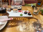 Зашли на отдыхе перекусить, по отзывам знакомых которые остались в положительном настроении чего не могу сказать о нас. Официант явно рекомендует блюдо подороже а не повкуснее. Суши были сухие и довольно маленькие , одни из них даже кислили. Лимонад был неплохим и единственным что мы доели. Не советую данное заведение к посещению