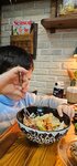 Брали кушать борщ и брускетты, было очень вкусно, к супу подавали хлеб, сметану и какой-то соус, все идеально сочеталось. Хлеб был прекрасен. Единственное, что не понравилось это неудобные стулья, вообще залы какие-то странные, в одном помещении вещи, которые никак не сочетаются по стилю, так внутри кафе выглядит недодуманным, несуразным Изнутри у них всегда есть красивые вывески, арки - видно, что стараются. Но вот, внутри как будто какая то каша-малаша. Слишком перегружено. Посидеть там из-за этого не хочется, только быстренько покушать и все Но может это на вкус и цвет