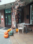 У вывески " Цветы&кофе" над кофейней на Ленинском проспекте в Химках всегда останавливаюсь и замираю в восторге, рассматривая новые композиции, соответствующие наступившим сезонам. Удивительно гармонично и ярко украшен вход, композиция из веток перед ним, много интересных деталей и предметов. В помещении очень уютно, пахнет хорошим кофе, выпечкой, знакомыми цветами. Там пекут очень вкусные пирожки, покупаем каждый день.