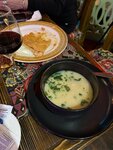 Это нечто ощущение что ты находишься в 2000-х сам ресторан выглядит как произведение искусства, еда очень вкусная цены приятные, там внутри целая деревня очень понравилось что играет живая музыка, я считаю это место обязательно к посещению всеми в особенности туристами. Брал тыквенный суп и хинкали всё было на высшем уровне