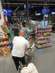 Постоянные покупатели в данном гипермаркете, широкий выбор товаров и приемлимые цены. Бывает что на кассе пробивают по завышенной цене, но быстро делают возврат при обращении. В общем все не плохо. Большая парковка и круглосуточная работа очень радуют.