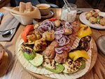 Впечатление осталось самое хорошее. Особенно после отдыха на Черном море в Туапсинском районе, после их общепита, вообще страшно в кафе заходить. Нам надо было покормить ребенка 9 лет.Здесь приятная атмосфера, уют и дружелюбный прием. Заказали чай и микс гриль. Блюдо оказалось не только сьедобное, но и достаточно большое- все трое наелись и даже осталось. Это напомнило гостеприимный Греческий остров, где отельеры накладывали огромные порции и много позиций не было смысла заказывать. Официантка Анна внимательная и заказ долго не ждали. Шашлык из свинины, два вида люля, куриный шашлык- все вкусно и пожарено как надо. Единственное , что получилось суховато и сыровато- это баклажан. Но и то был из свежего сырья и не оставлял после себя непережеванных палок на тарелке( как на море было🤦‍♀️) Пока ждали заказ нашей девочке предложили раскраску и карандаши. Правда пошли мыть руки вода из крана не текла. Пошли в другую кабинку- там струйка со спичку, но руки помыли с мылом и салфетками вытерли( все было в наличии). Но главное- еда не разочаровала. Можно зайти и поесть и посидеть. Уютно, в центре- это удобно. Да, машину припарковали у них во дворе. Место правда пришлось подождать, но нас гостеприимно разместили, за что отдельное спасибо. Обязательно зайдем еще и не один раз, ребенка накормить в перерывах между разными занятиями.