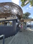 "Гнездо" - модная гастро локация на берегу Балтийского моря. Несколько корнеров с разным набором вкусной еды и напитков. Открытая зона со столиков + терассы со столиками с видом на пляж и море. Для плохой погоды есть несколько прозрачных капсул-шатров. Заказ в одних окошках, получение его - в других. Самообслуживание. Открытая кухня - залипательное зрелище. Скумбрии рядами на палках-мечах, лосось на доске над открытым огнем, жаровни с корюшкой... Вид, запах и вкус отличны. Рекомендую в качестве обеда, совмещенного с пролгулкой (далеко от центра) и пляжем.
