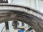 Обращался за ремонтом дисков, в результате мало того что один диск как был кривой так и остался, на втором при правке появилась трещина была заварена поверх без фаски и лопнула через 20км езды по ровной дороге. Далее можете наглядно увидеть совершенно не компетентное отношение к сварочным работам, кромки не сведены, также можем видеть отсутствие провара и какой либо фаски.