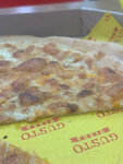 Наша семья любители сырной пиццы. Часто заказываем в разных местах. Сегодня заехали в Меганом и решили попробовать пиццу 4 сыра в новом для нас месте Gusto pizza, заманила печь, которая стоит в видемой мой зоне, потому знаем, что в печи всегда вкусно. НО.. Ждали 30 минут, пицца сухая, 4мя сырами даже и не пахнет, просто тоненько размазаный соус и еле еле видимый какой то сыр, его просто практически там нет. Один специфический запах жидкого копченого дыма. Это худшая сырная пицца которую мы если, сказал муж, и я присоединяюсь к его словам. Ребенок сказал фу и есть не стал.