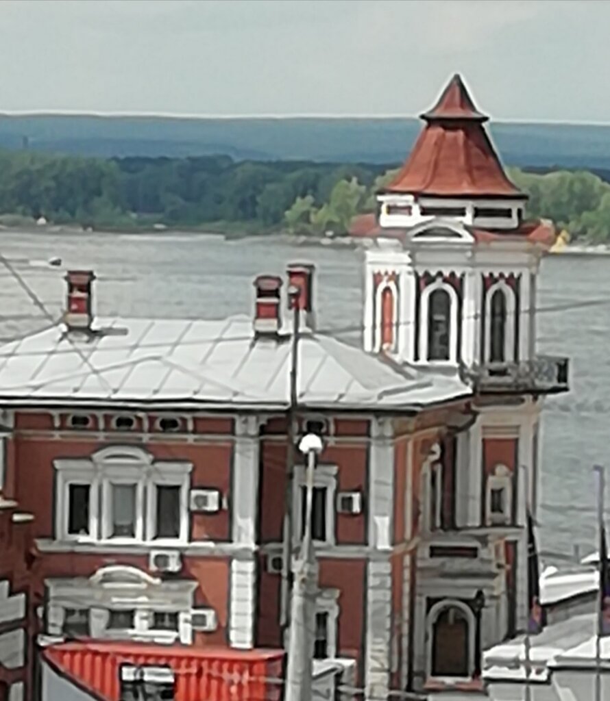 Добротное, красивое здание! Но это уже второй дом, который построил в 1914 году фон Вакано. А вот первый прелестный "Вакановский терем" для своей семьи фон Вакано построил на территории завода 1888 - 1889 г. И был он красивый, как игрушечный, называли его "Дом директора". Он и сейчас сохранился, но фасад его... плоховато выглядит, Только верхняя часть дома видна с Пушкинского сквера и башенку с балконом со стороны монастыря. Со стороны Волги, там где территория спасательный станция, поближе можно к дому подобраться. но увидите опять же только его часть, т. к вокруг него строения завода и какая то непонятная территория с офисом и жилыми строениями. Может кто подскажет как его увидеть полностью?