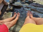 К сожалению, не взяла с собой купальник, поэтому просто мочила ножки/ручки. В первом бассейне для ног вода очень горячая градусов 50. Во втором меньше. Рядом со мной сидел дедушка. Местный житель. Говорит, что вода действительно лечит. Сколько живёт, столько ездит…