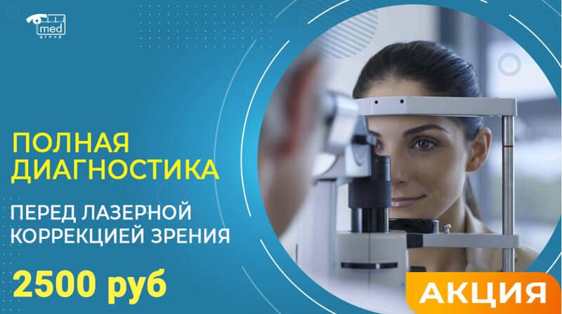 Полная диагностика зрения перед лазерной коррекцией зрения - 2500 руб.