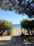 Самое лучшее место. Рядом горы с рощей. Воздух чистый. Передвигаться только пешком. Машин нет. Огромный чистый пляж. За территорией следят, чисто. Нет стоков в море.