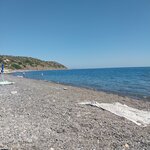 Очень мало людей и это огромный плюс этого места. Для тех кто любит тихий семейный отдых самое то. Недостатки мало людей мало где можно поесть. После шторма нагнало крупные голышом, в воду заходить удобно в резиновых тапках